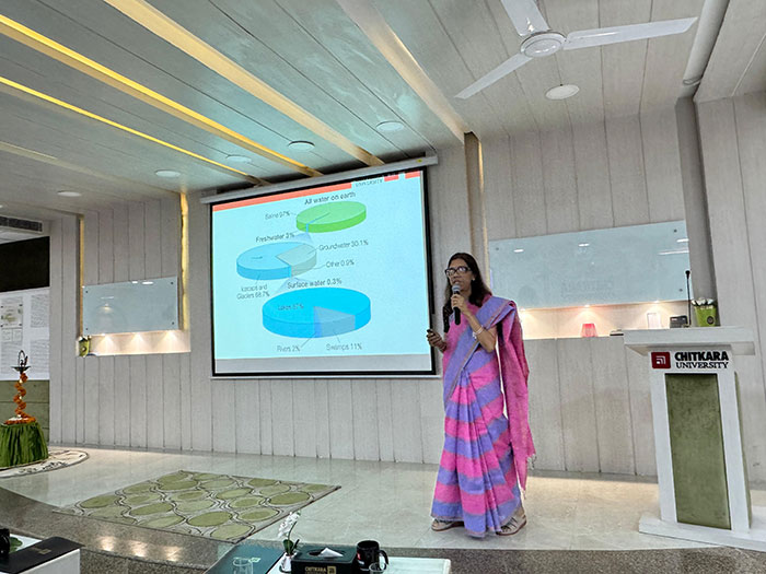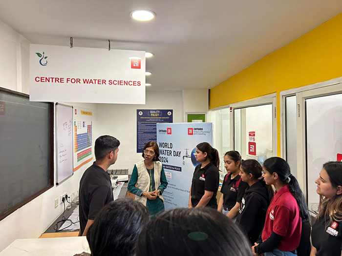 Centre for Water Sciences (CWS), Chitkara University was established in March 2019 with the primary goal of establishing a central facility on campus to carry out water testing and analysis, and research in the field of water sciences. In addition to research, it is NABL accredited lab for drinking water testing. The main areas of testing and study at the Centre include drinking water and industrial wastewater, as well as raising public awareness about the necessity of clean water and water conservation/recharging. The Centre routinely hosts programs on water-related topics for students, faculty, the general public (including the villages and towns surrounding the University), and other private and public organizations. CWS has two labs: one for analyzing different water quality parameters using different instruments, and the other for research on water purification using only living plants and biomass from plants waste with other materials. The research in CWS includes the removal of organic dyes, fluoride, PFAS, heavy metals, etc. from contaminated water through Phytoremediation, hydroponics systems, microbial fuel cells etc.